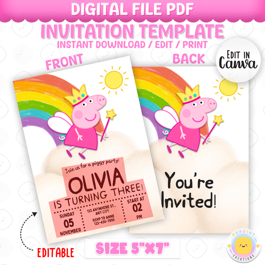 Peppa Pig Rainbow Birthday Invitation - Editable Party Invite for Kids