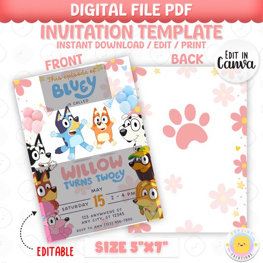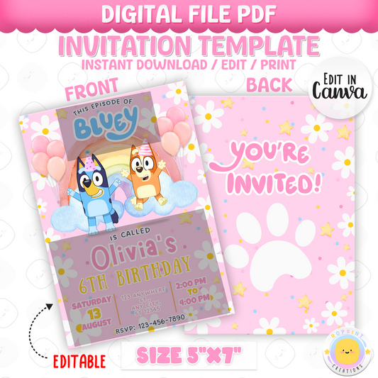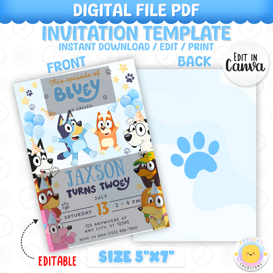 Bluey Birthday Invitation Template - Editable Bluey Template