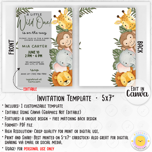 A Little Wild One is on the Way Safari Baby Shower Invitation - Safari Baby Shower Invite