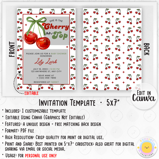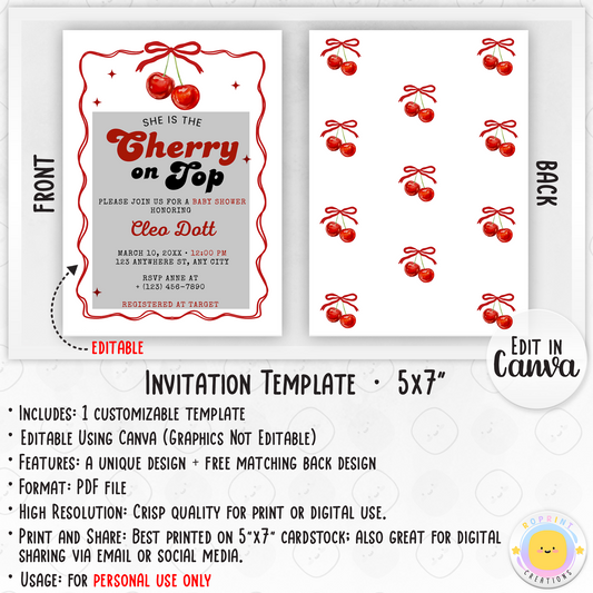Cherry On Top Baby Shower Invitation - Coquette Cherry on Top Invite