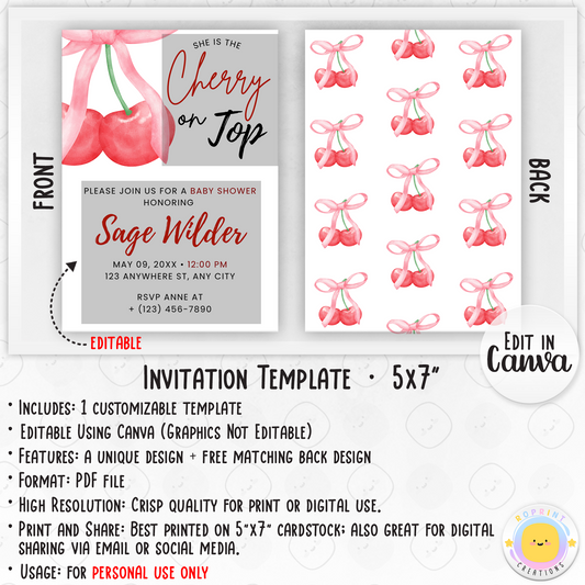 Cherry On Top Coquette Baby Shower Invitation - Cherry on Top Invite