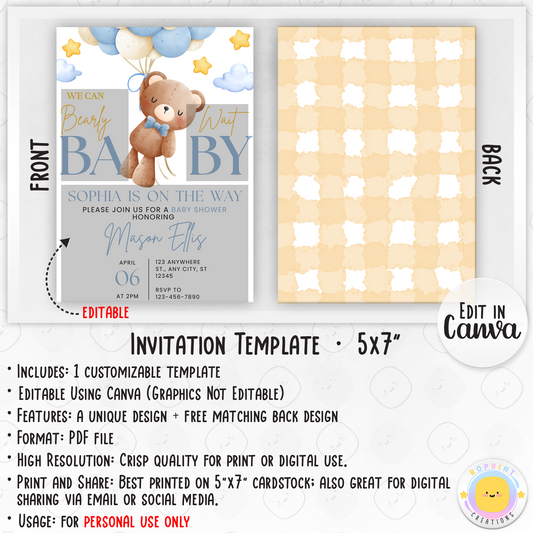 We Can Bearly Wait Baby Shower Invitation - Bear Baby Shower Invite