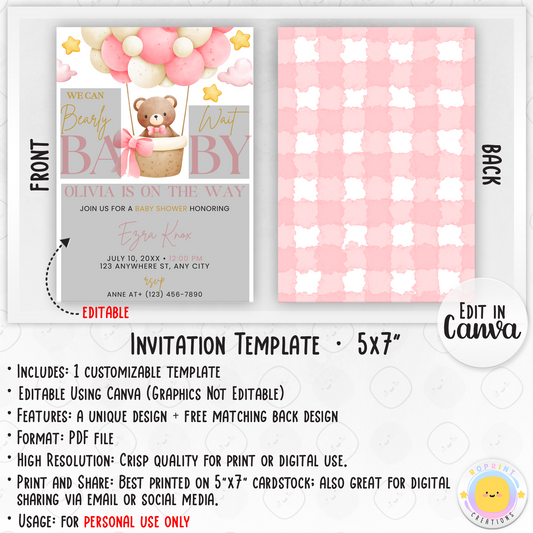 We Can Bearly Wait Baby Shower Invitation - Bear Baby Shower Pink Invite
