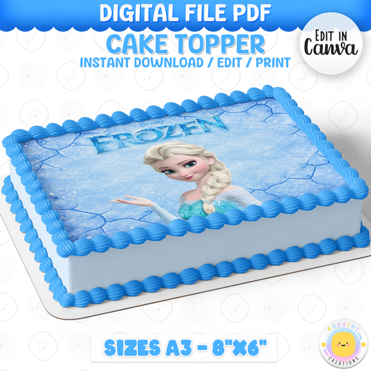 Frozen Birthday Cake Topper - Editable Princess Party Cake Decoration