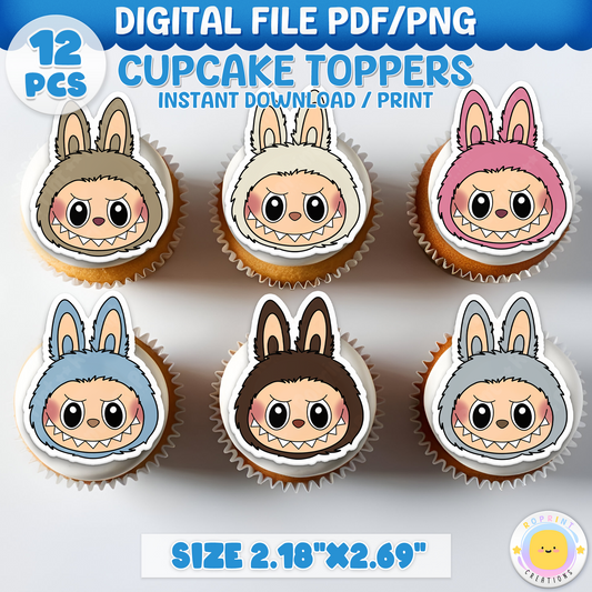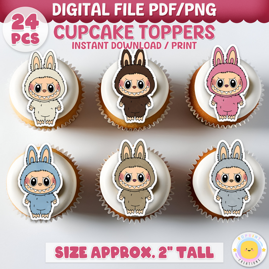 Labubu Cupcake Toppers - Printable Cute Monster Labubu Birthday Party Favor