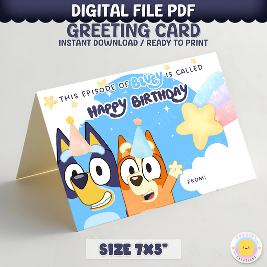 Bluey Birthday Card - Bluey TWOEY Printable Birthday Greeting Card