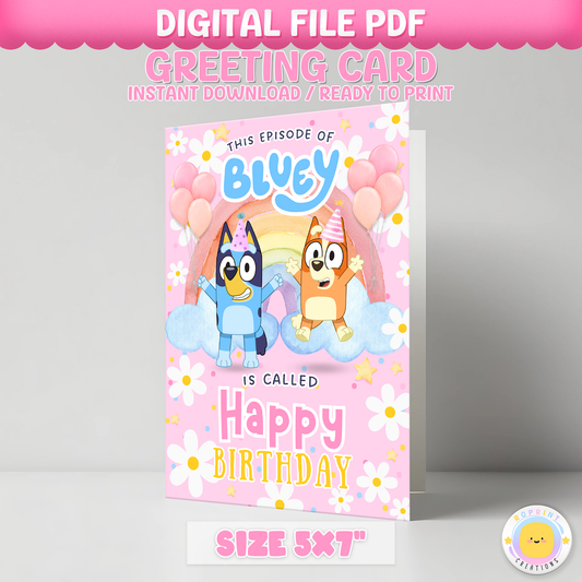 Bluey Pink Birthday Card - Bluey this episode is called Kids Printable Greeting Card