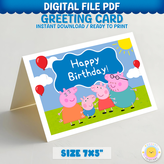 Peppa Pig Birthday Card - Kids Pig Printable Greeting Card