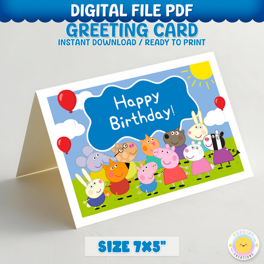 Peppa Pig and Friends Birthday Card - Kids Pig Printable Greeting Card
