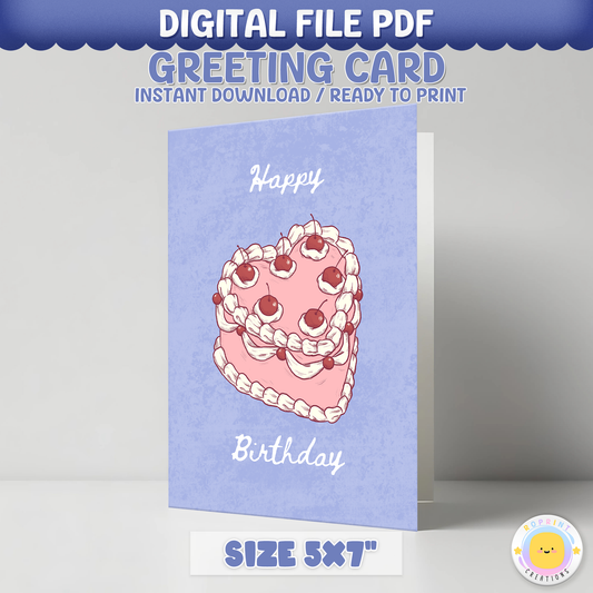 Vintage Cake Birthday Card - Cute Vintage Printable Greeting Card