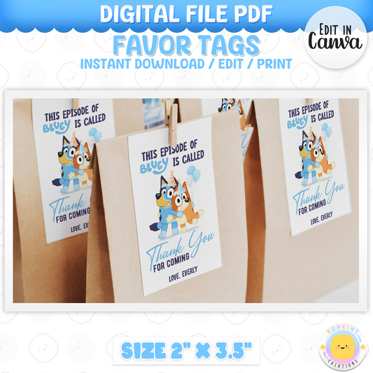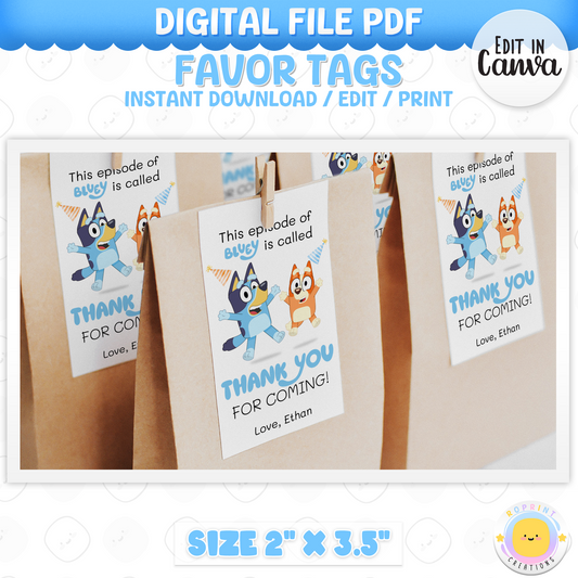 Bluey Birthday Favor Tag Template - Editable Bluey Thank You Tag Party Favor