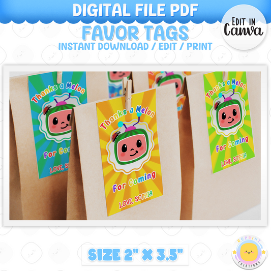 Cocomelon Inspired Favor Tags - Kids Party Favor Tag Printable - Instant Download