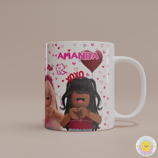 Custom Name Roblox Girls Mug - Personalized Roblox Girls Heart Coffee Mug, Roblox Mug Gift For Kids