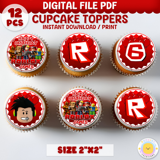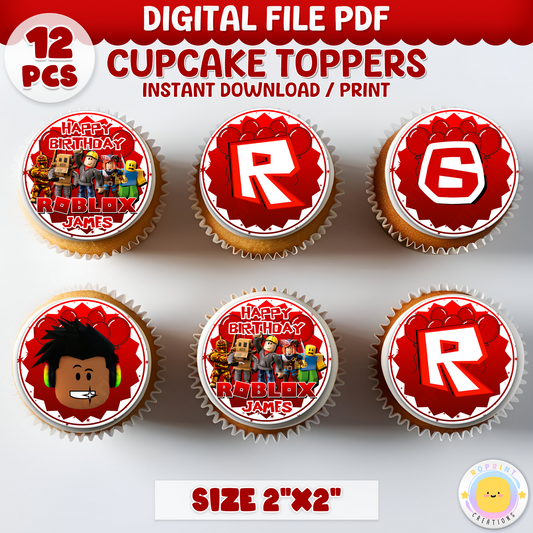 Roblox Birthday Cupcake Toppers - Roblox Gamer Printable Party Favor