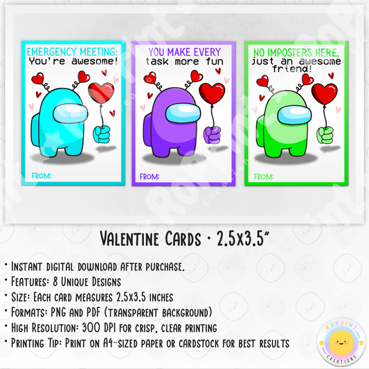 Among Us Valentine Cards - Printable Kids Valentine's Day Cards