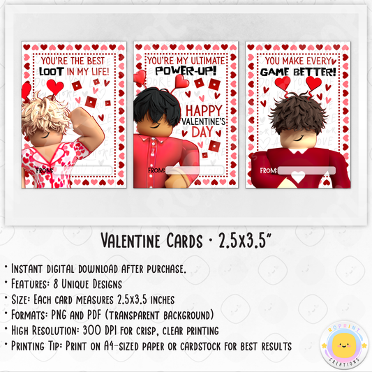 Roblox Inspired Valentine Cards - Printable Kids Valentine's Day Cards