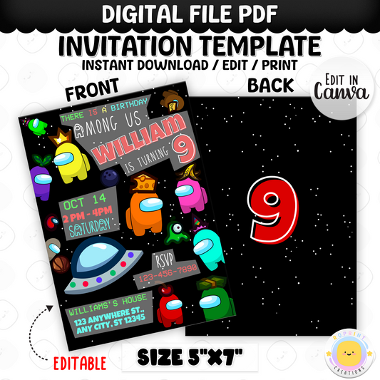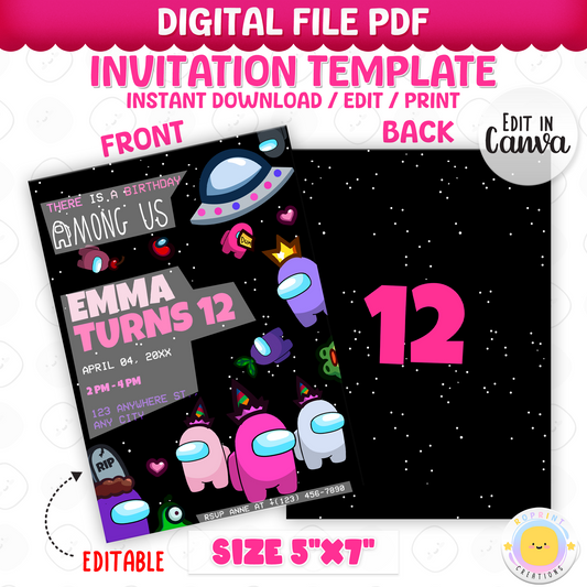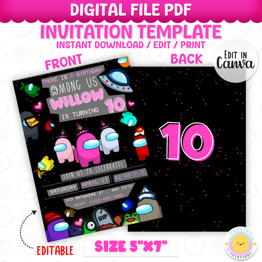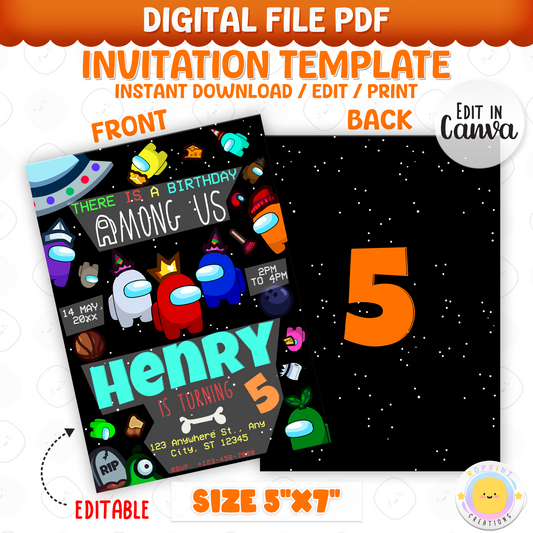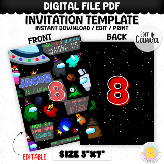 Among Us Birthday Party Invitation - Editable Gaming Party Canva Template - Instant Download
