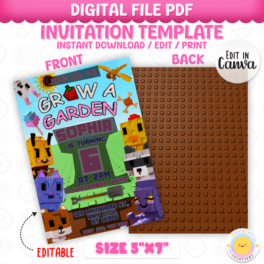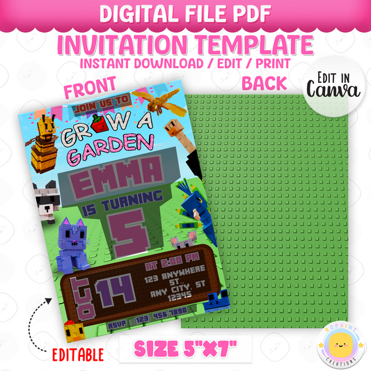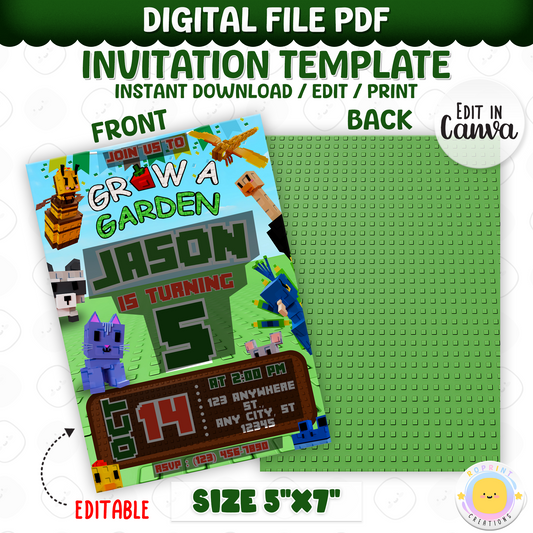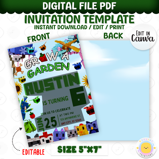 Roblox Grow A Garden Editable Birthday Invitation - Kids Party Printable Template
