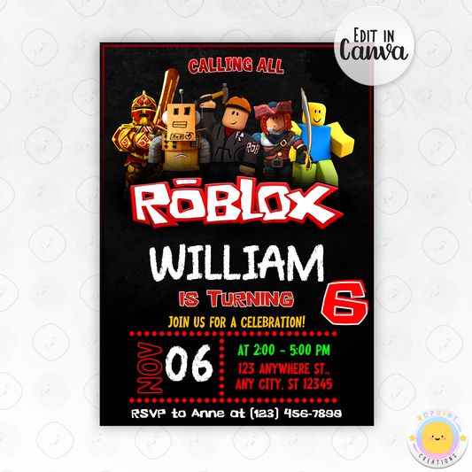 Roblox Birthday Invitation - Personalized Kids Party Invite