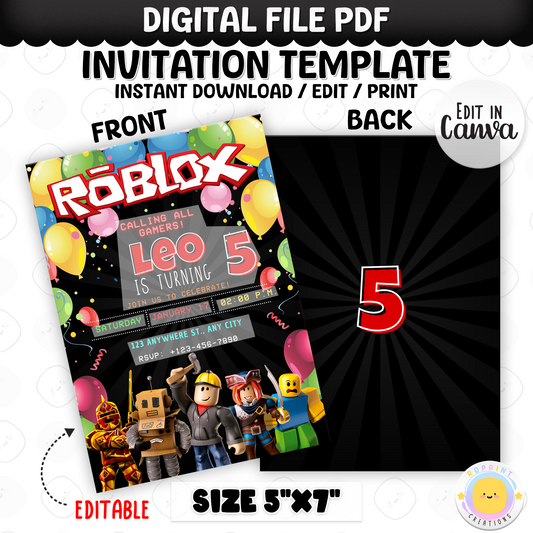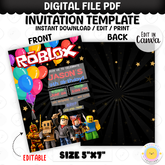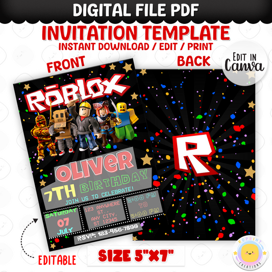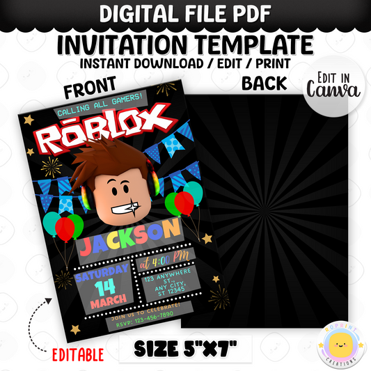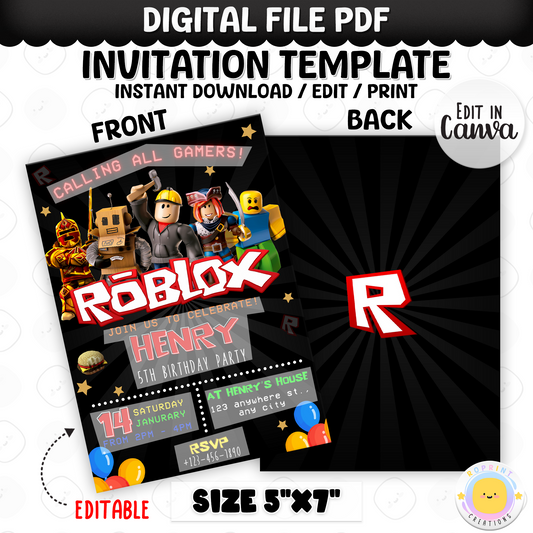 Roblox Birthday Party Invitation - Editable Roblox Canva Invite - Instant Download