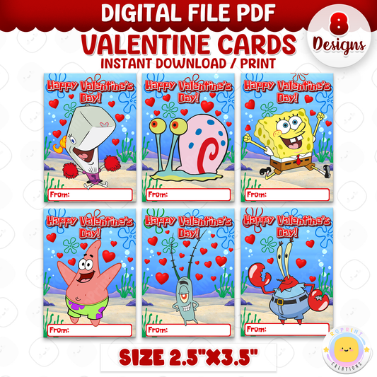 Printable SpongeBob Valentine Cards for Kids - Classroom Valentines